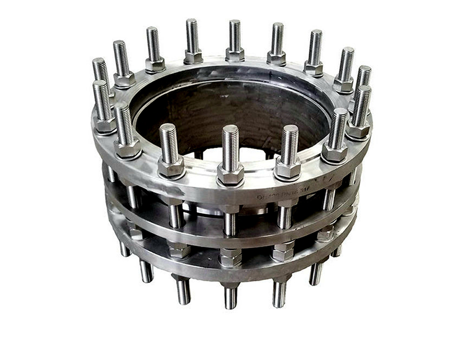 2.該產品采用金(jīn)屬(shǔ)鑄造或焊接(jiē)組成(chéng),鬆套部位選用(yòng)梯形橡膠密(mì)封圈,在壓蓋和螺栓的作用下。